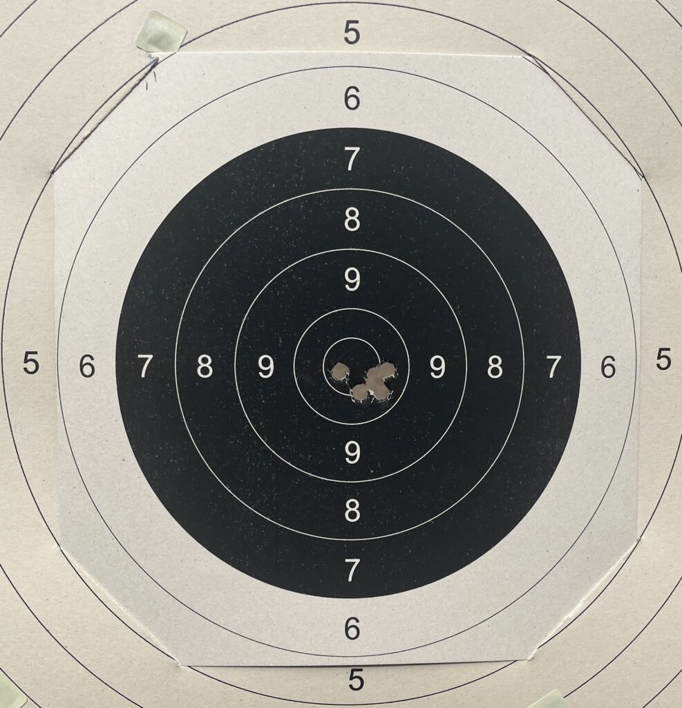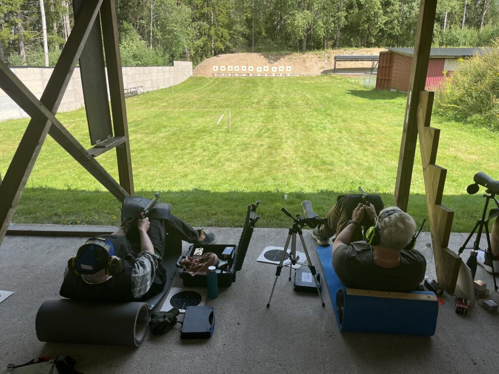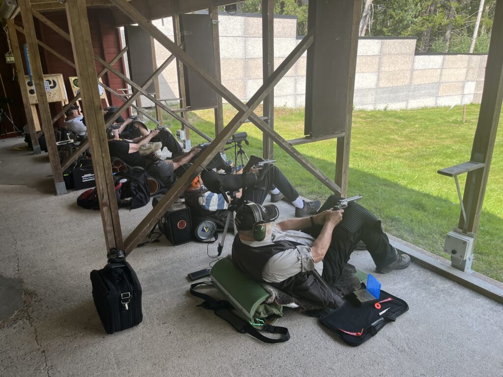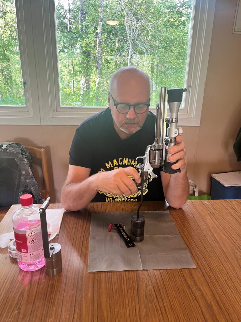 De första skjutlagen bjöd på lite försiktiga resultat, det handlar ändå om magnumskytte på avståndet 50 meter. På det hållet är nationella pistolspegeln liten, och varje klick på siktet ger dubbelt så mycket justering som på 25 meter — något att tänka på.
